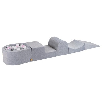 MeowBaby 4 Element Foam Playset, Durable Foam Climbing Blocks and 100 Colorful Balls Pit, Ideal for Imaginative Play and Motor Skills, Light Gray