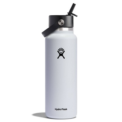 Hydro Flask 40oz Wide Mouth Flex Straw Bottle - White: Vacuum-Insulated, BPA-Free