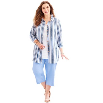 A: For work, tuck your blouse into tailored pants or a pencil skirt and pair with closed-toe shoes. For casual outings, wear it untucked with jeans and a pair of flats or sneakers.