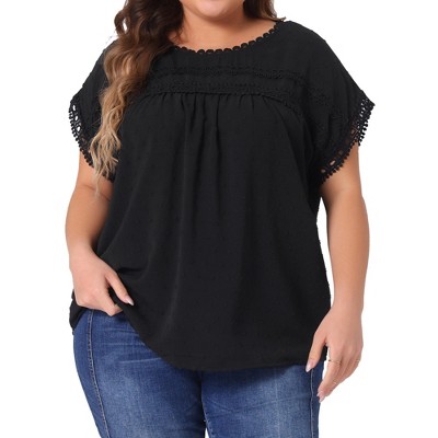 Women's Plus Size Crew Neck Short Sleeve Casual Knit Textured T-Shirts - Agnes Orinda
