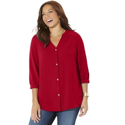 Catherines Petite Light And Airy Y-Neck Blouse