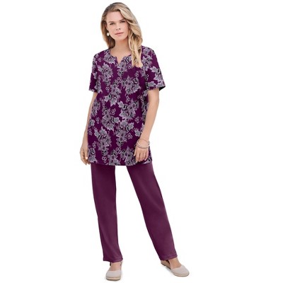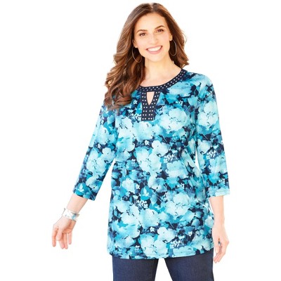 Roaman's Plus Size Soft Knit Print Tunic With Notch Neckline
