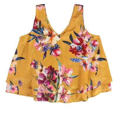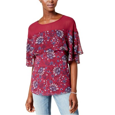Kensie Womens Flounce Floral Knit Blouse