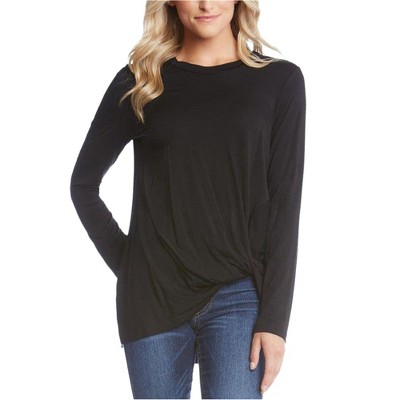 Kensie Womens High Low Floral Knit Blouse