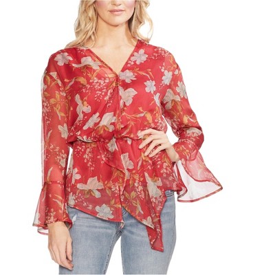 Alfani Womens Asymmetrical-Hem Wrap Blouse