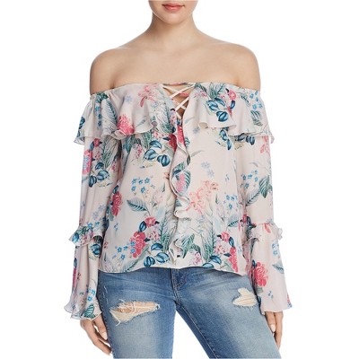 1.STATE Womens Tie Sleeve Cold Shoulder Blouse