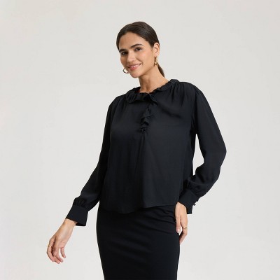 A: For work, tuck your blouse into tailored pants or a pencil skirt and pair with closed-toe shoes. For casual outings, wear it untucked with jeans and a pair of flats or sneakers.