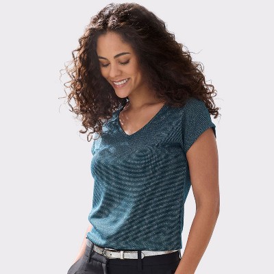 Tops are a closet staple and there are tons of different styles. Let’s start with the essentials. Women’s shirts are your go-to for everyday wear. Think classic button-downs, relaxed tees, and fitted crewnecks—all foundational pieces that pair effortlessly with jeans, skirts, or trousers. These tops are ideal for layering or standing alone and are available in a wide range of materials, from breathable cotton to soft jersey knits. With neutral tones and playful prints to choose from, it’s easy to build outfits that feel both comfortable and stylish.