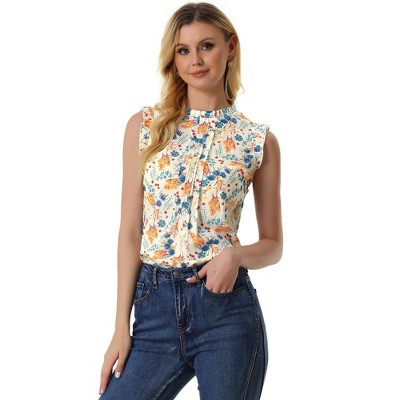 Allegra K Women's Ruffled Business Office 1950s Vintage Floral Sleeveless Top