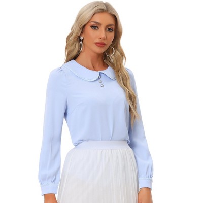 Allegra K Women's Work Office Contrast Peter Pan Collar Short Sleeve Blouse
