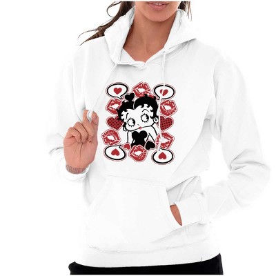 Betty Boop Cartoon Hearts and Kisses Hoodie Sweatshirt Women Licensed Brisco Brands