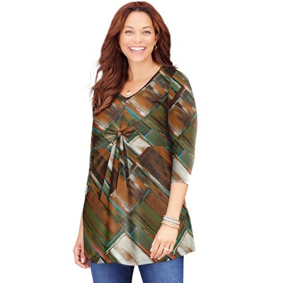 June + Vie by Roaman's Metallic Print Blouse