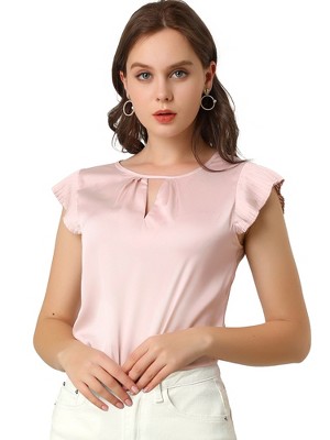 Allegra K Women's Mock Neck Sleeveless Keyhole Back Ribbed Knit Blouses