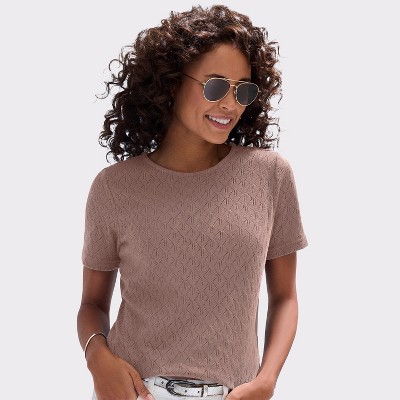 Tops are a closet staple and there are tons of different styles. Let’s start with the essentials. Women’s shirts are your go-to for everyday wear. Think classic button-downs, relaxed tees, and fitted crewnecks—all foundational pieces that pair effortlessly with jeans, skirts, or trousers. These tops are ideal for layering or standing alone and are available in a wide range of materials, from breathable cotton to soft jersey knits. With neutral tones and playful prints to choose from, it’s easy to build outfits that feel both comfortable and stylish.