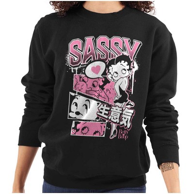 Betty Boop Sassy Kanji Comic Panels Women Crewneck Sweatshirt Licensed Brisco Brands