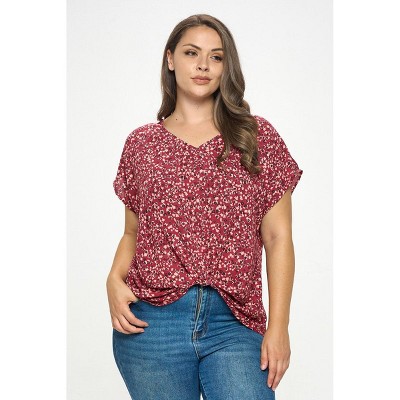 WEST K Women's Leah V Neck Short Dolman Sleeve Front Knob Blouse