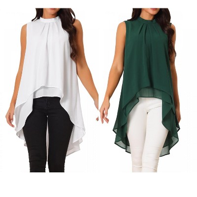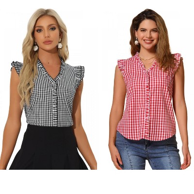 Allegra K Women's Sleeveless Frill Mock Neck Ruffle Chambray Blouse