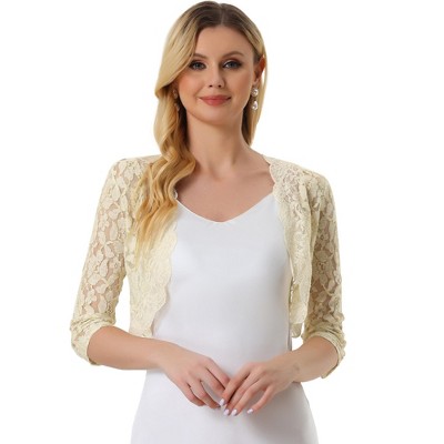 INSPIRE CHIC Women's Crop 3/4 Sleeve Sheer Floral Lace Shrug Cardigan Top