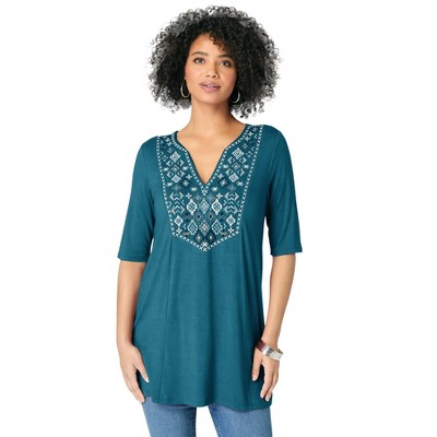Roaman's Snap Button Boatneck Soft Knit Tunic
