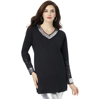 Woman Within Side Button V-Neck Waffle Knit Sweater