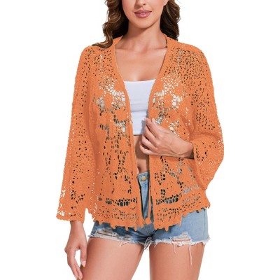 Anna-Kaci Women's Embroidered Floral Butterfly Crochet Drop Shoulder Cardigan