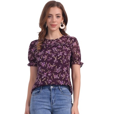 Allegra K Women's Puff Sleeve Square Neck Peasant Floral Blouse