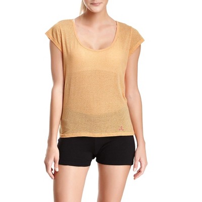 Balanced Tech Women's Dot Burntout Scoop Neck Tee - Flame Orange - Medium