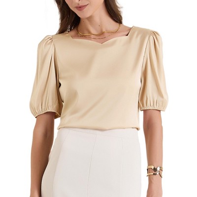 INSPIRE CHIC Women's Peter Pan Collar Puff Short Sleeve Button Cuff Elegant Blouse