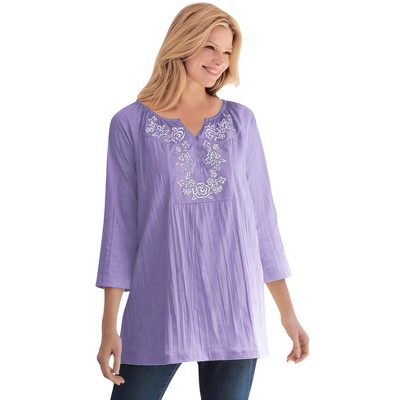 Catherines Georgette Buttonfront Tie Sleeve Cafe Blouse