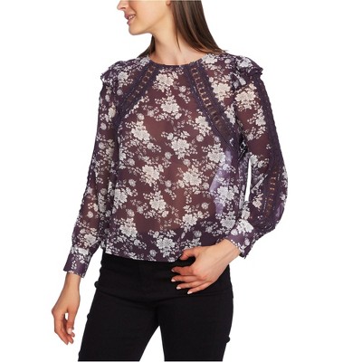 1.STATE Womens Lace Inset Floral Pullover Blouse