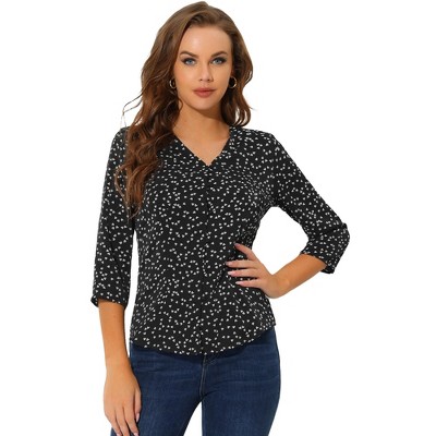 Allegra K Women's Short Sleeve Casual V-Neck Print Notch Lapel Collar Summer Blouses