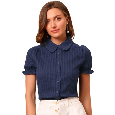 INSPIRE CHIC Women's Short Sleeve Button Down Peter Pan Collar Blouse