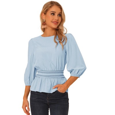 A: For work, tuck your blouse into tailored pants or a pencil skirt and pair with closed-toe shoes. For casual outings, wear it untucked with jeans and a pair of flats or sneakers.