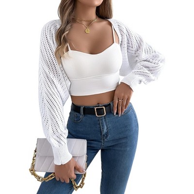 Open Front Knit Cardigan - Women's Basic Long Sleeve Casual Cover Up