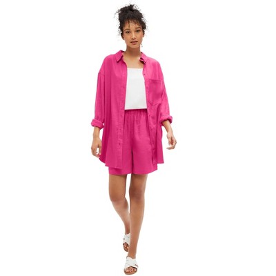 ellos Oversized Linen-Blend Boyfriend Shirt