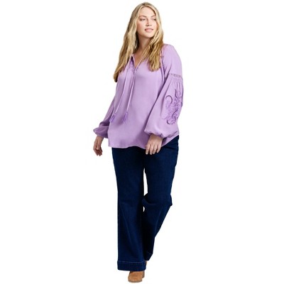 A: For work, tuck your blouse into tailored pants or a pencil skirt and pair with closed-toe shoes. For casual outings, wear it untucked with jeans and a pair of flats or sneakers.