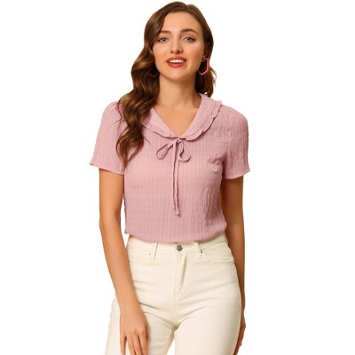 Allegra K Women's Ruffled Retro Short Sleeve Office Polka Dots Blouses