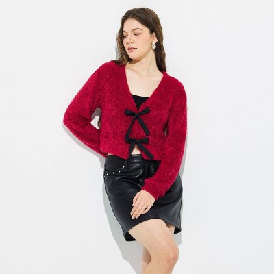 Women's V-Neck Bow Tie Cardigan Sweater - Wild Fable™