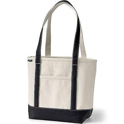 Lands' End Open Top Long Handle Canvas Tote Bag