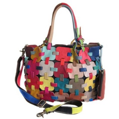 CTM Women's Textured Synthetic Leather Tote Handbag with Handle