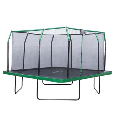 - upper bounce gymnastics style, rectangular trampoline set with premium top-ring enclosure system