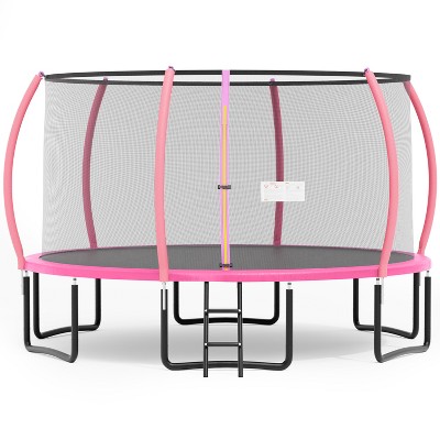 - upper bounce gymnastics style, rectangular trampoline set with premium top-ring enclosure system