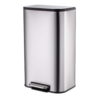 - qualiazero 13 gal/50l, rectangle shape, stainless steel step-on can, with soft close lid, brush finish