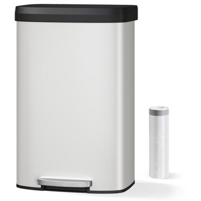 - qualiazero 13 gal/50l, rectangle shape, stainless steel step-on can, with soft close lid, brush finish
