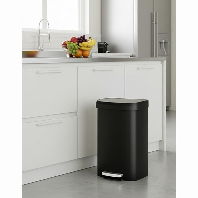 - simplehuman 50 liter / 13 gallon semi-round kitchen step trash can with secure slide lock, black plastic