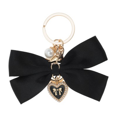 Unique Bargains Faux Pearl Heart Bow Handbag Charms Keychains