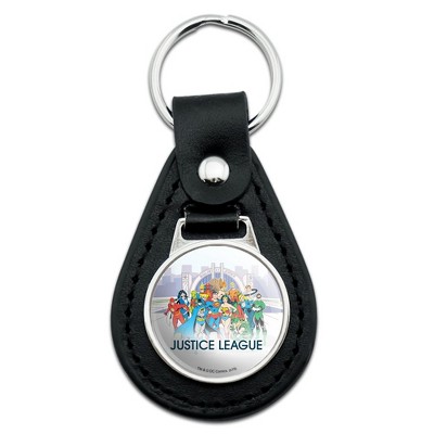 Justice League Hall Of Justice Black Leather Keychain