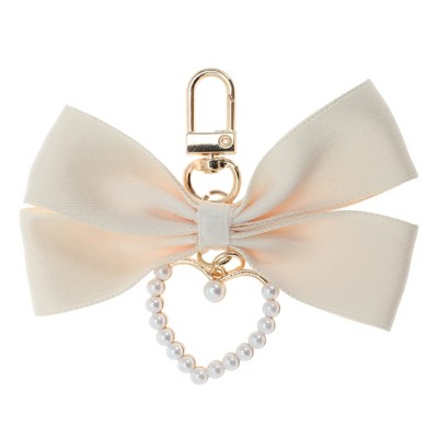 Unique Bargains Faux Pearl Heart Bow Handbag Charms Keychains