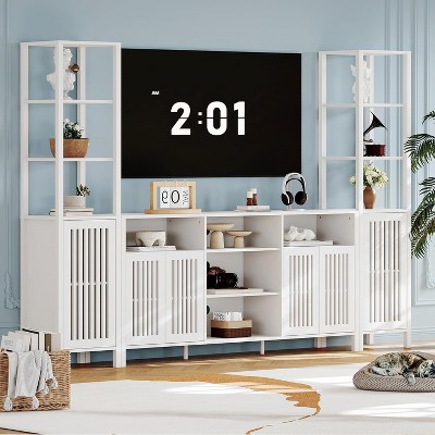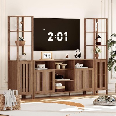 Farmhouse TV Stand with 2 Bookcases, 70" Media Console with Storage for Living Room & Bedroom