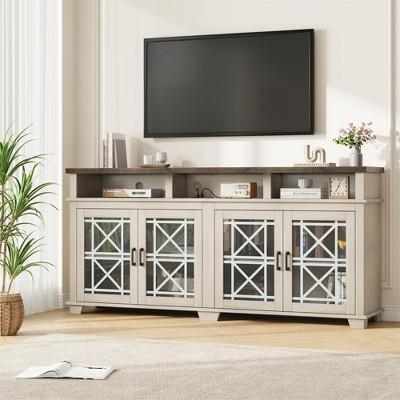 59in Farmhouse TV Stand, Wood TV Console Table Mid Century Modern Entertainment Center